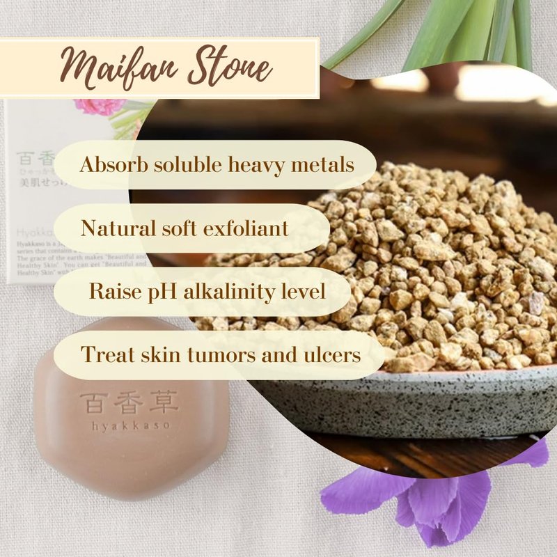 Special precautions for use: Avoid contact with eyes. If the contact occurs, rinse thoroughly with water. In the irritation persist, do contact a physician. ●If redness, swelling, itching or irritation appears, stop usage and get a medical consultation. If you suffer from the symptoms mentioned above, do not expose the skin under the direct sun. ● Children use is allowed only under a parental control. ● Store it in a dry place away from direct sunlight. ● The product may crumble, producing white particles, because of the Maifan stone component.