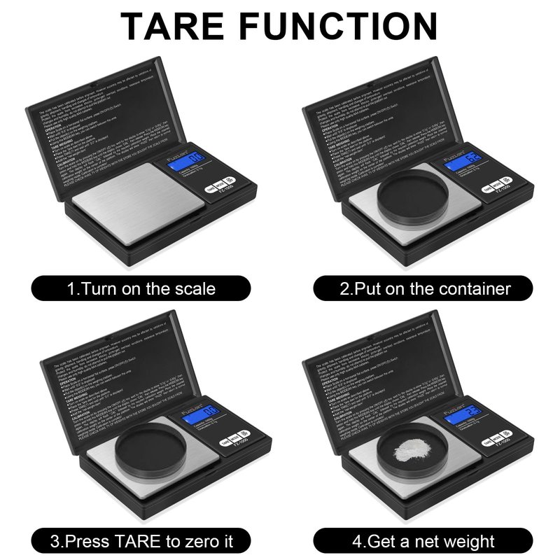 - Function: You can use the tare function to get the net weight of anything within 1000g by zero the weight of container. Energy saving by 3 minutes auto-off function.
