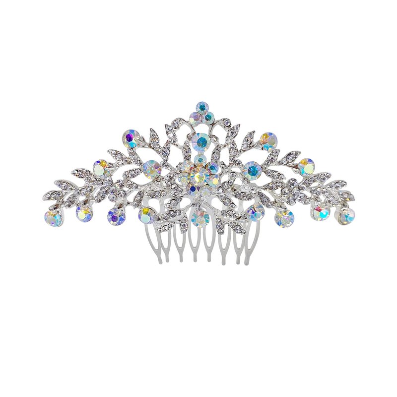 Made with high quality Rhinestone in silver plated metal setting. Measures approximately 4"W x 1 1/2"H tall at the center Fantastic hair accessories for weddings, proms, parties or other special occasions.