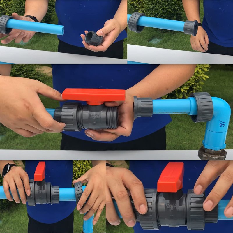 - APPLICATION: ASTM - UPVC Double True Union Ball Valve, suitable for indoor and outdoor use like with cess-pipe, landscape and irrigation, pool, cold water, venting, waste applications, aquaculture, and other applications, zoo services Pharmaceutical Pulp, Paper, sprinkler system, agricultural irrigation system.