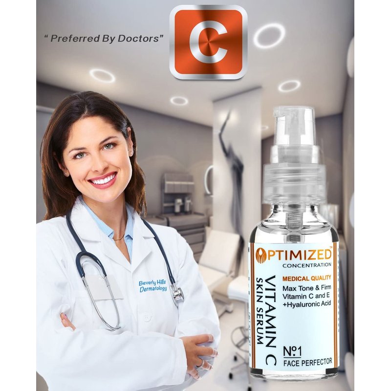 - BEST VITAMIN C SERUM TO GET YOUR TIMELESS BEAUTY BACK by OPTIMIZED LAB in Beverly Hills . Imagine Vitality and an Ageless Complexion! OPTIMIZED FACE PERFECTOR is a Topical Medical Quality anti-aging serum packed with potent Vitamin C and Vitamin E, vital nutrients to skin health aiding in collagen production. Restore your skin to a younger, more radiant state with Vit C and E powerful antioxidant that helps restore aging skin by neutralizing free radicals caused by sun damage and over exposure.