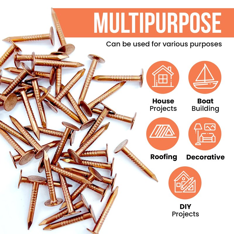- PURE COPPER NAILS - Pure copper 1 inch roofing nails with a 3/8" head (11 Gauge)