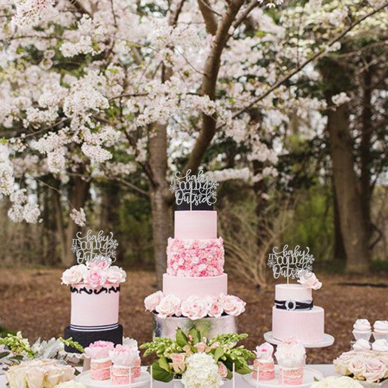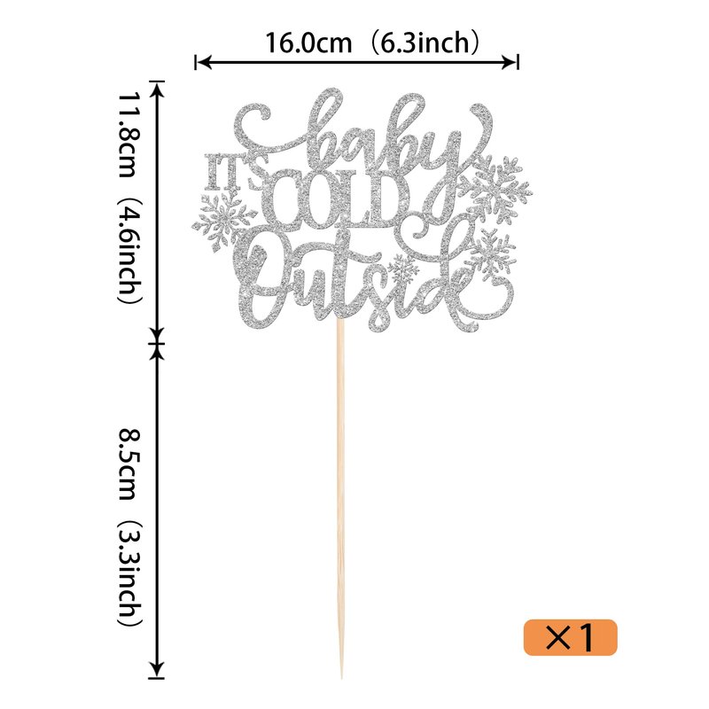 1 Pack Baby It's Cold Outside Cake Topper Glitter Winter Snowflake Baby Shower Cake Pick Decoration for Winter Snowflake Baby Shower Kids Birthday Party Supplies Silver