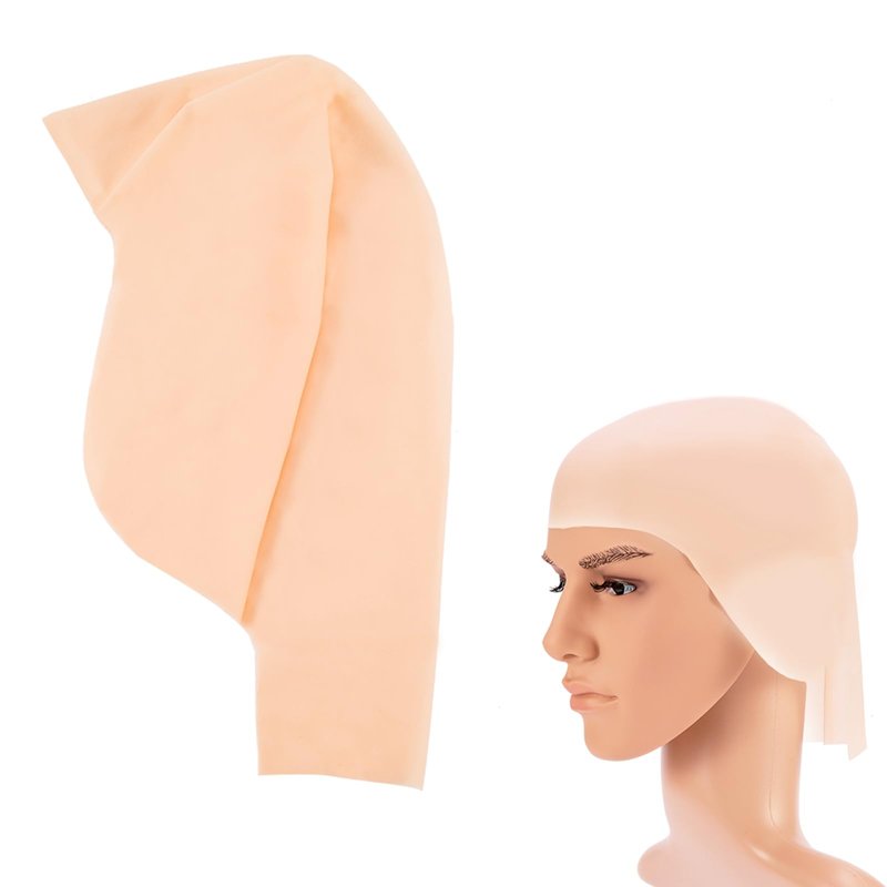 2. Tidy up the hair net and cover with the latex cap, adjust till it looks natural.