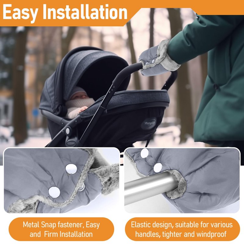 - Easy to Use:30 seconds to complete the installation - Just close a few buttons.It allows you to slide your hands in and out easily while keeping parents hands warm.
