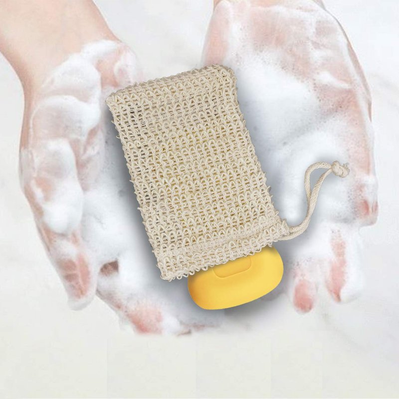 1 pari Soap Exfoliating Bag Natural, Soap Saver with Drawstring and Wooden Bead Holder,Exfoliating Loofah Pouch For Bathroom shower