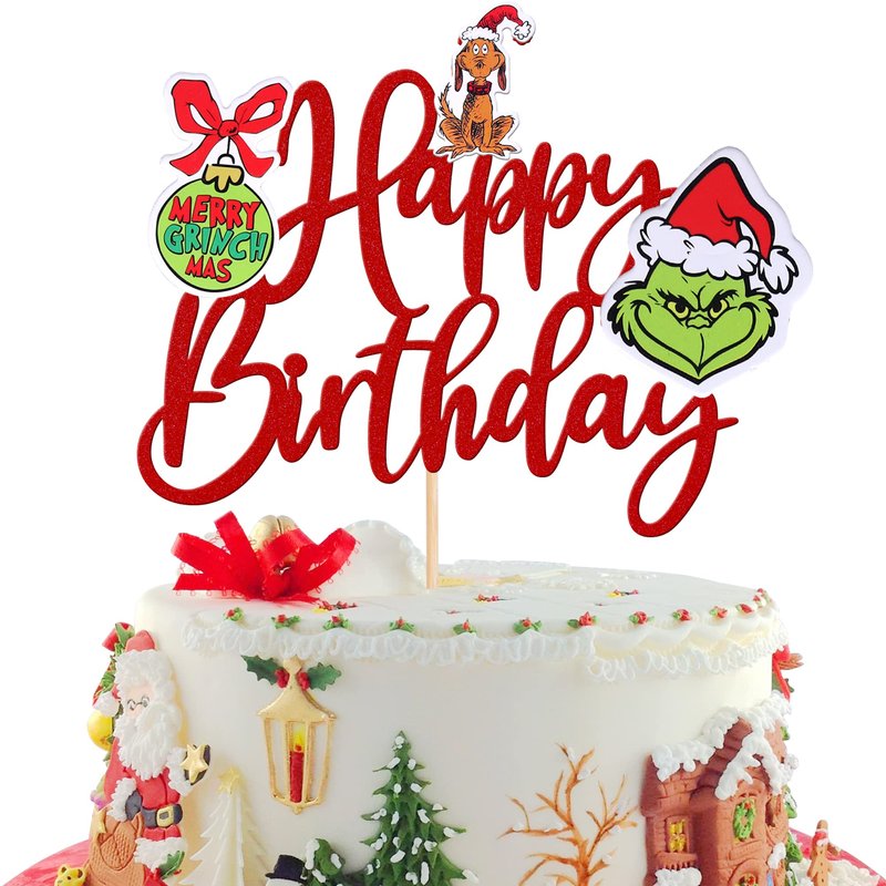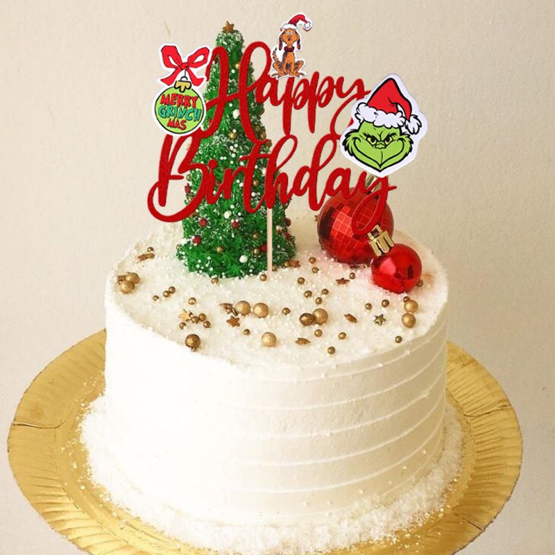 Grinch Happy Birthday Cake Topper for Merry Christmas Theme Baby Shower Kids Birthday Party Cake Decorations Supplies