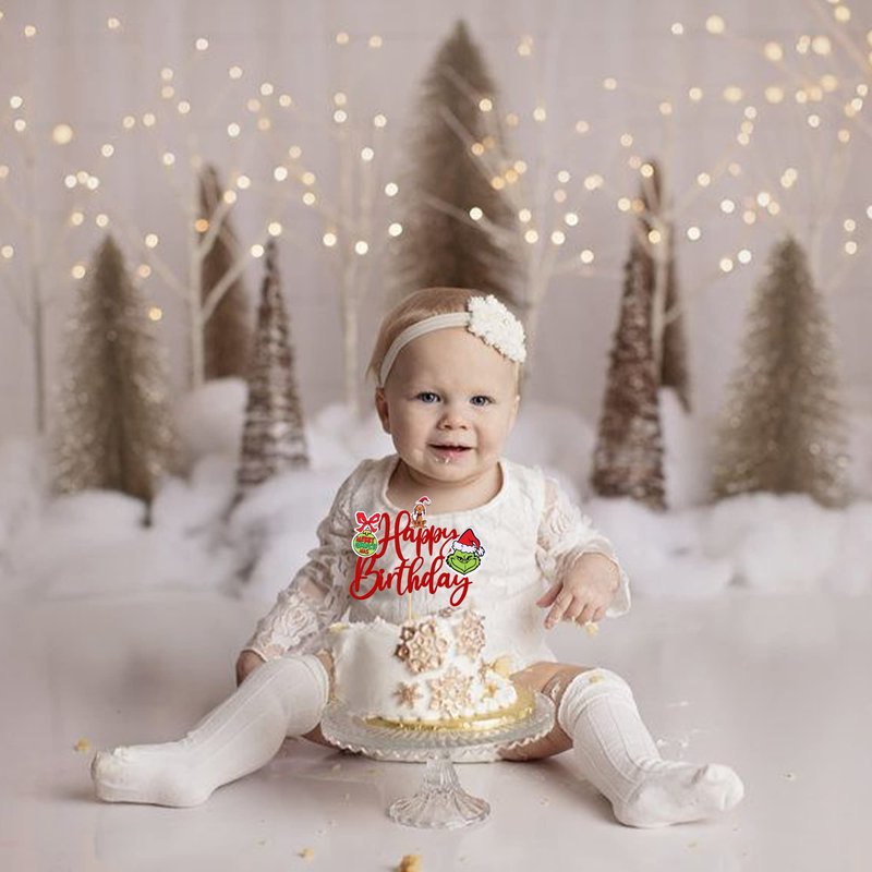 Perfect for grinch happy birthday theme party, merry christmas theme party, baby shower theme party, Kids boys girls birthday party cake decorations supplies.