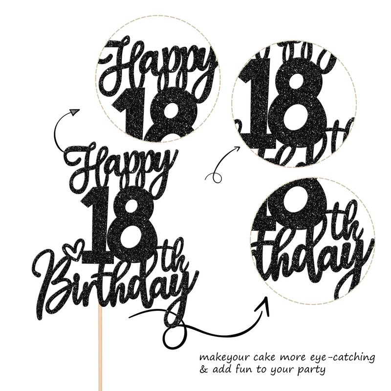 - Wide Usages ! The cake topper is perfect for happy 18th birthday theme party, cheers to 18 years theme party, 18th anniversary theme party cake decorations, they can make your cake more attractive and bring the fun to your party.You can also apply them for ice cream, fruits, cookies and other desserts.