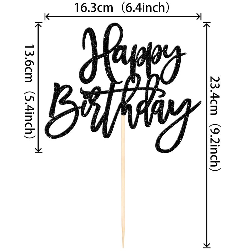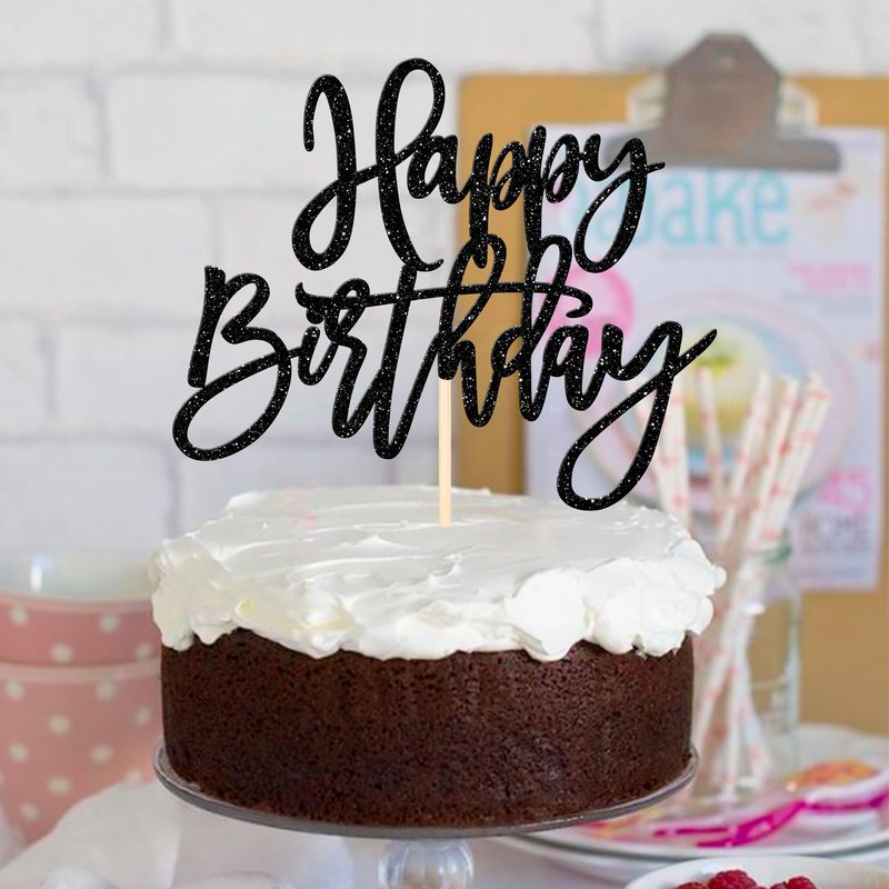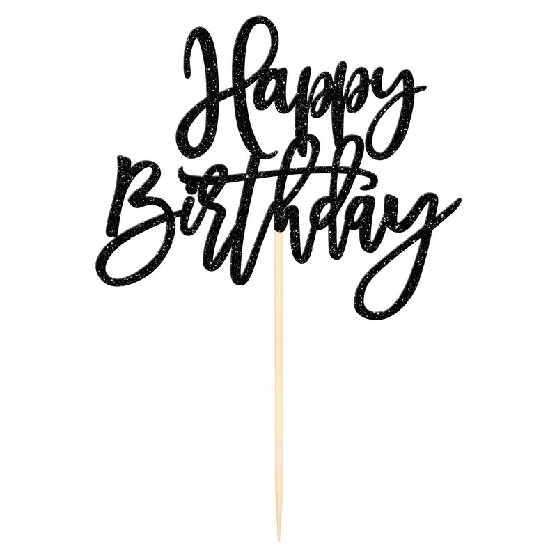 1 PCS Happy Birthday Cake Topper Glitter Happy Birthday Cake Pick for Celebrating Happy Birthday Anniversary Theme Party Cake Decorations Supplies Black