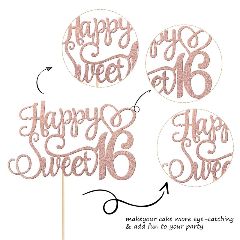 - Wide Usages ! The cake topper is perfect for sweet 16 theme party, happy 16th birthday theme party, happy 16th anniversary theme party cake decorations, they can make your cake more attractive and bring the fun to your party.You can also apply them for ice cream, fruits, cookies and other desserts.
