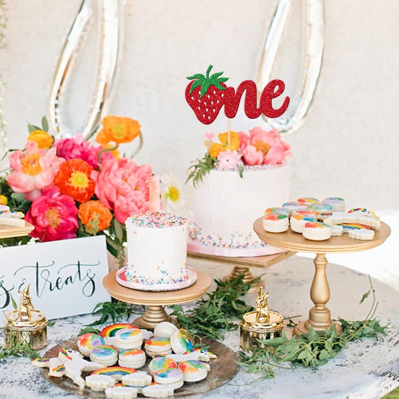 - Wide Usages ! The cake topper is perfect for strawberry one theme party, first birthday strawberry theme party, sweet one strawberry theme party, berry 1st birthday theme party, baby shower theme party, kids boys girls birthday party cake decorations, they can make your cake more attractive and bring the fun to your party.You can also apply them for ice cream, fruits, cookies and other desserts.