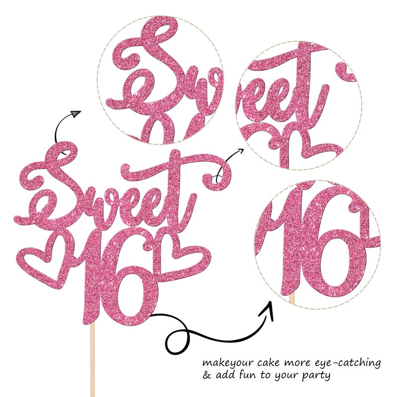 - Wide Usages ! The cake topper is perfect for sweet 16 theme party, happy 16th birthday theme party, 16th anniversary theme party, cheers to 16 years old birthday theme party cake decoration, they can make your cake more attractive and bring the fun to your party.You can also apply them for ice cream, fruits, cookies and other desserts.