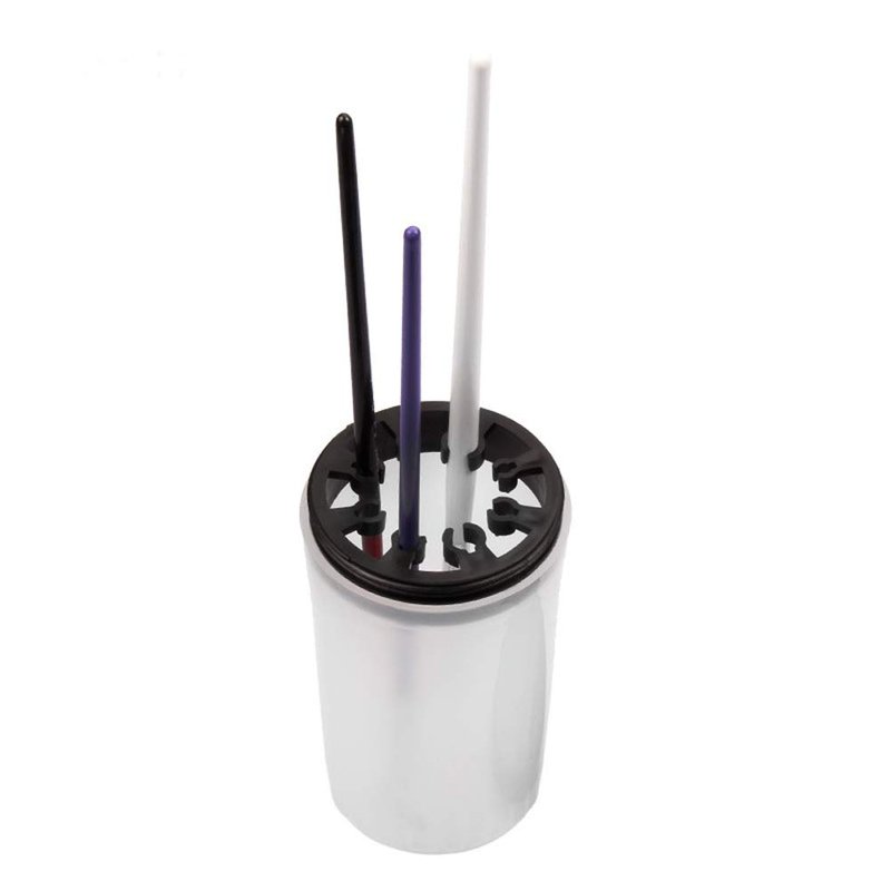 - Screw on lid design to prevents evaporation of brush cleaning solution when not in use