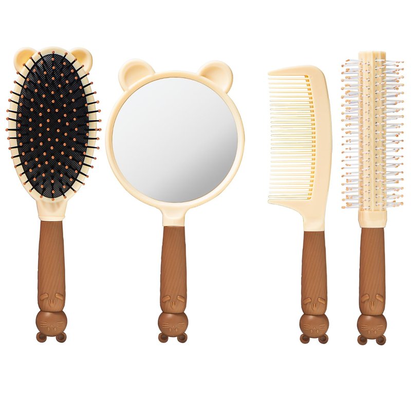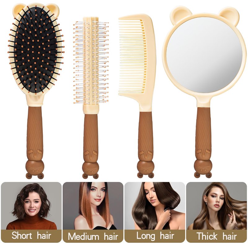 1 Set 4 Pcs Hair Brush and Comb Set for Girls, Comb Mirror Set, Hair Brush Set for Girl, Brush, Hair Comb Set, Dry Wet Detangling Hair Brush, Scalp Massager Hair Brush, Comb Set for Girls Kids Gift