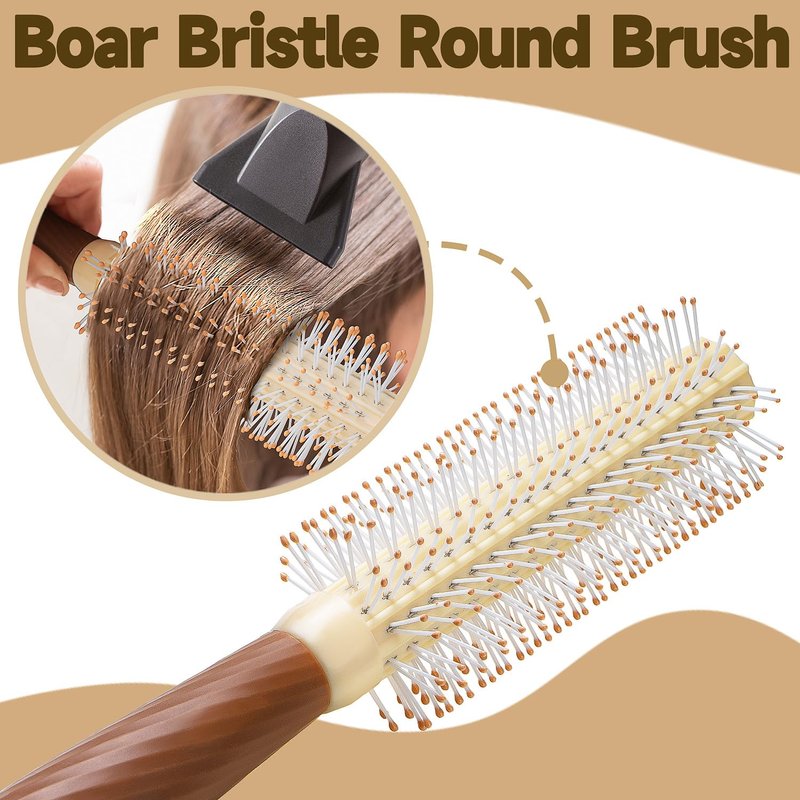 - 🌹1 Set 4 pcs hair brush: Our hair care products packed with 1*boar bristle brush, 1*boar bristle round brush, 1*hair comb, 1*mirror.