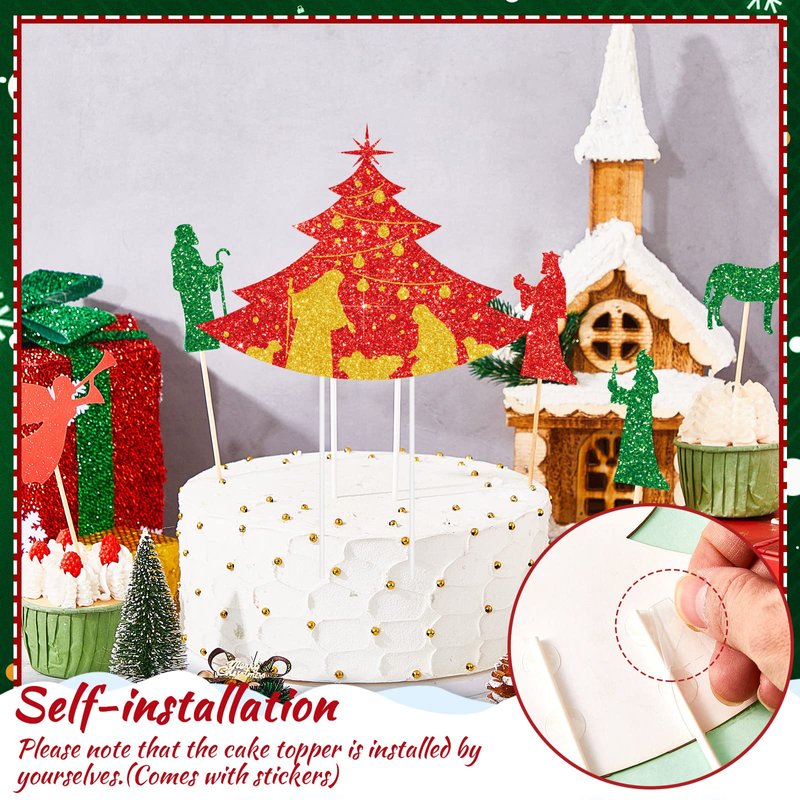 Features: Featuring glitter paper material, these religious Christmas decorations can shine in the sun, creative and beautiful, are suitable for your dining room, mantel fireplace, window, wall, ceilings, furniture, even courtyard, doorway gate, outside porch and garden. The Jesus decorations for party have nativity scenes, suitable for Christmas family reunion, which can be the talk of the party. Specifications: Material: glitter paperColor: red, gold, greenSize: as shown in the picturePackage includes: 1 x Happy Birthday Jesus banners11 x Nativity scene cupcake toppers 1 x Happy Birthday Jesus cake topperNotes: Manual measurement, please allow slight errors on size. The color may exist a slight difference due to different screen displays. Winding risk may exist, please keep away from children.