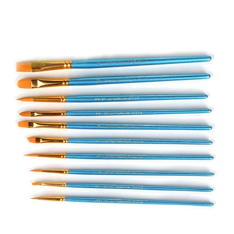 1 Set of 10 Pieces Synthetic Hair Paint Brushes, Blue, for Acrylic, Oil and Watercolor Painting