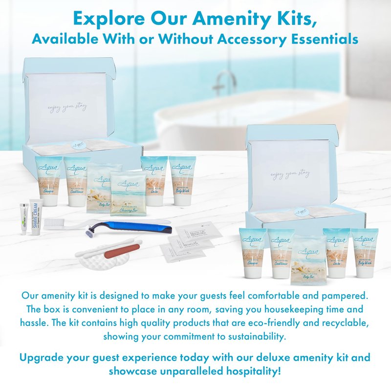 - CUSTOMERS LOVE US: "This product gives our Airbnb a high-end feel for our guests. Definitely would buy again." "Decent size, great smell, quality, and very luxurious packaging. If you care about your guests and online reputation, buy this amenities set." "Very nice set for my beach condo!"