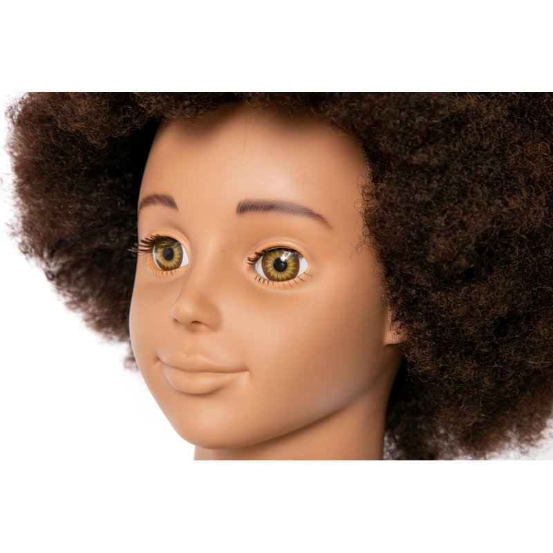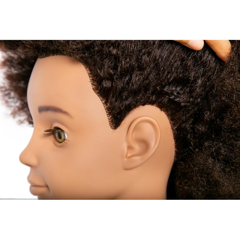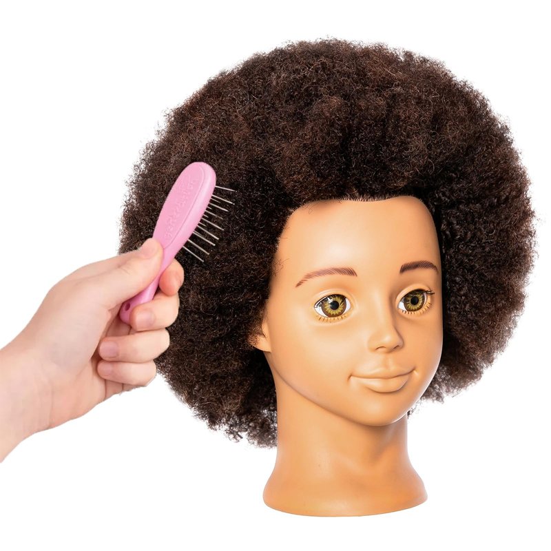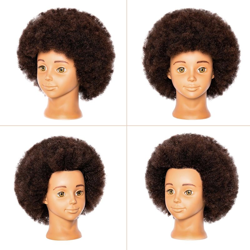 10'' Afro Real 100% Human Hair Cosmetology Doll Head Mannequin Head For Kids, Teens Hairdresser With Clamp Stand (10 inches)