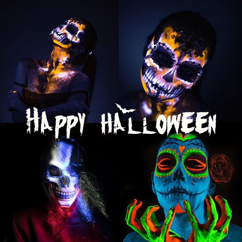 Material: Safe and non irritating raw materials; Usage: Apply to face and body parts; Scenario: party, holiday party, birthday party, Halloween and other festivals; Effect: glowing under UV light and black light.