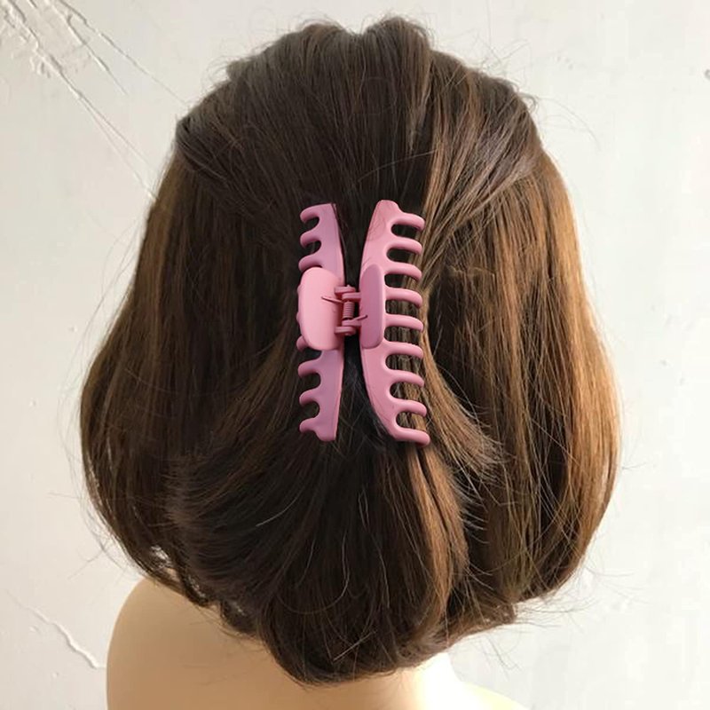 - 🍩【PEFECT SIZE】:The jumbo hair clips are 4.33*1.85*1.97 Inches. These clips are just the right size - hold all of your thick hair, but also would be tight enough for thinner hair.The have inner teeth for a more secure hold. These clips are the perfect size! Sturdy and thick, they held my hair in place beautifully .Just stretch the teeth around your hair and it kept it in place .