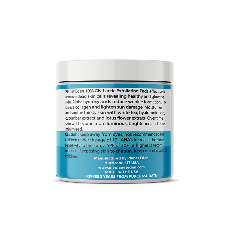 Planet Eden's 10% Gly-Lactic Exfoliating Pads (60 count) are a skin's best friend, loaded with natural botanicals that soothe and hydrate dull and dry skin as well as clearing away oils and dirt for oily skin types.