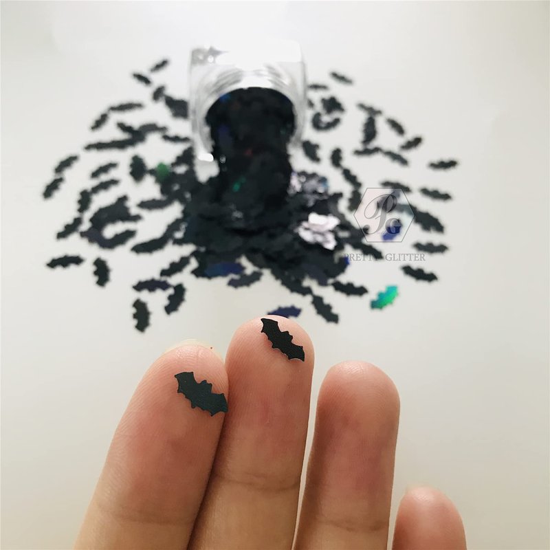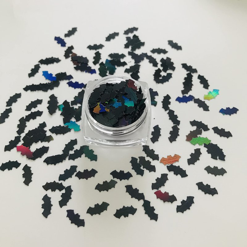 10 Grams/Pack -10MM Black Bat Shape Holographic Sequins Glitter Halloween Festival Rave Beauty Makeup Face Body Nail Art Decoration LB1000