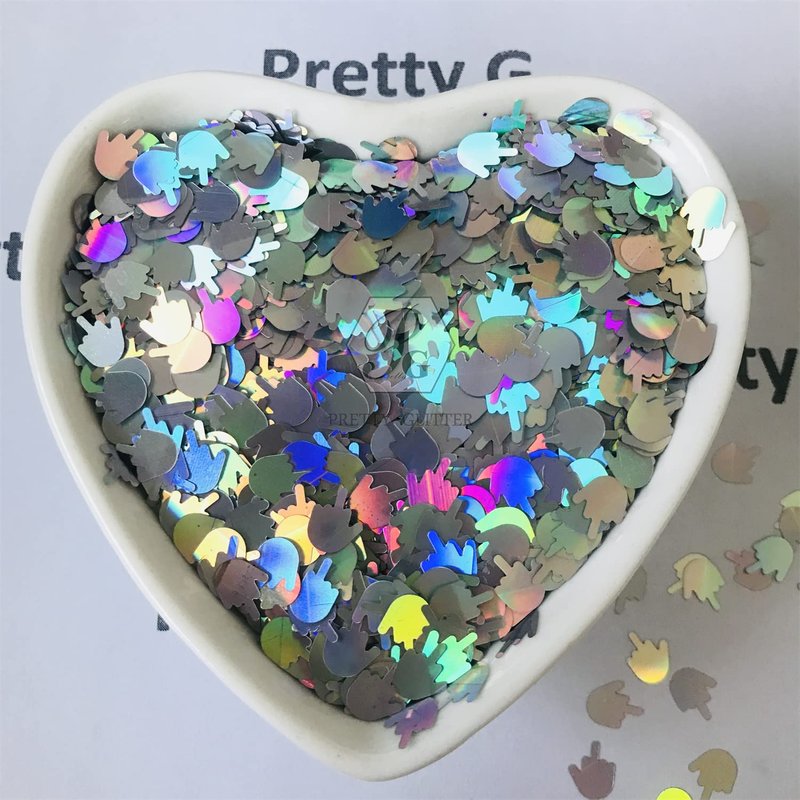 10 Grams/Pack - Sliver Middle Finger Gestures Glitter - Festival Rave Beauty Makeup Face Body Nail Art Decoration LB100