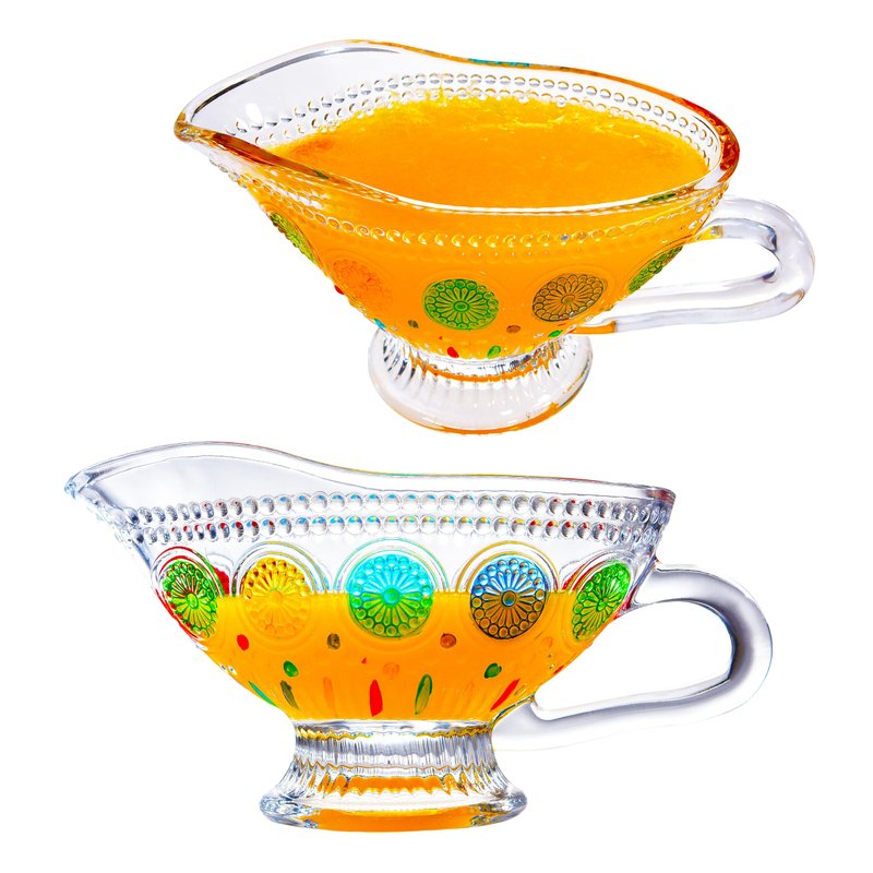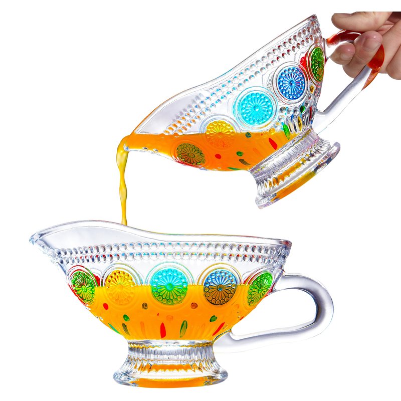 - 2. Antique Victorian Style: Embrace the charm of the past with our vintage textured gravy boat. Featuring an intricate and colorful sunflower design, it adds a touch of elegance to any table setting.