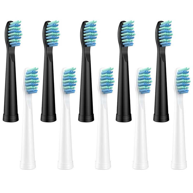 10 Pack Electric Toothbrush Replacement Heads Compatible with Sonic-FX and Fit SnapWhite for Adults and Kids, Soft Charcoal/Nylon Bristles(5 Black+5 White)