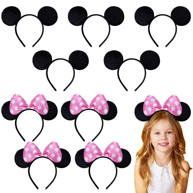 - Great Value: 10 pcs Mouse Ears Headbands in 2 style (5 ears blackfor boys and 5 ears with Pink bow for girls )The set of 10 Mouse ears party supplies are the must-have items for anyone who wants to have themed party.