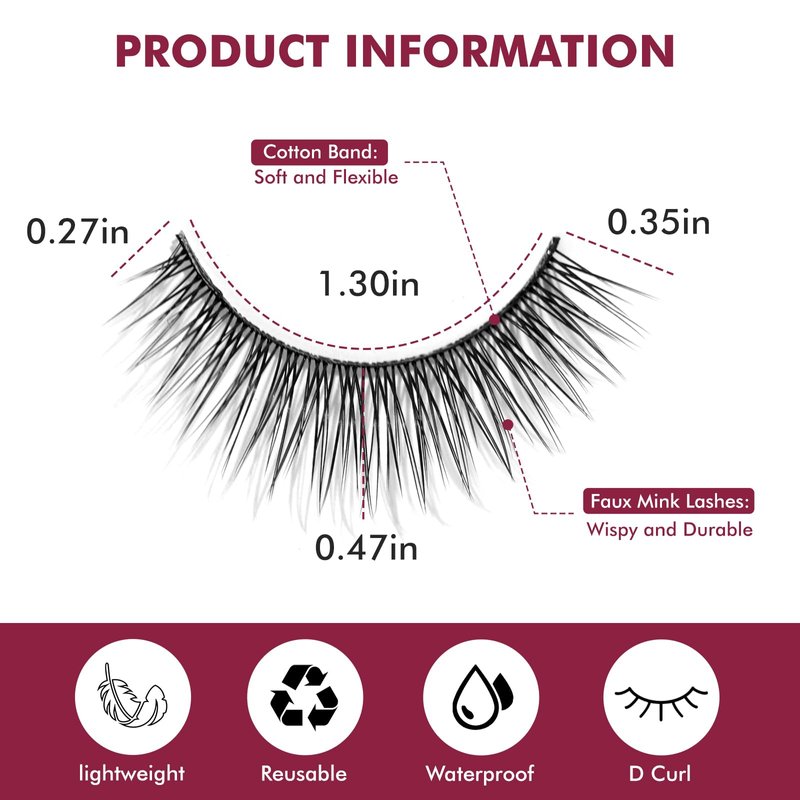 - HIGH-QUALITY MATERIAL - Crwahie False Eyelashes are made of high quality fiber material,these fake eyelash lashes natural has combined safe use with durability, meanwhile Crwahie eye lashes is soft and comfortable to touch Won’t bring too much burden to your lid. Even wearing false false lashes for a long time, you can still wipe it off cleanly and effortlessly, better for your eyes.