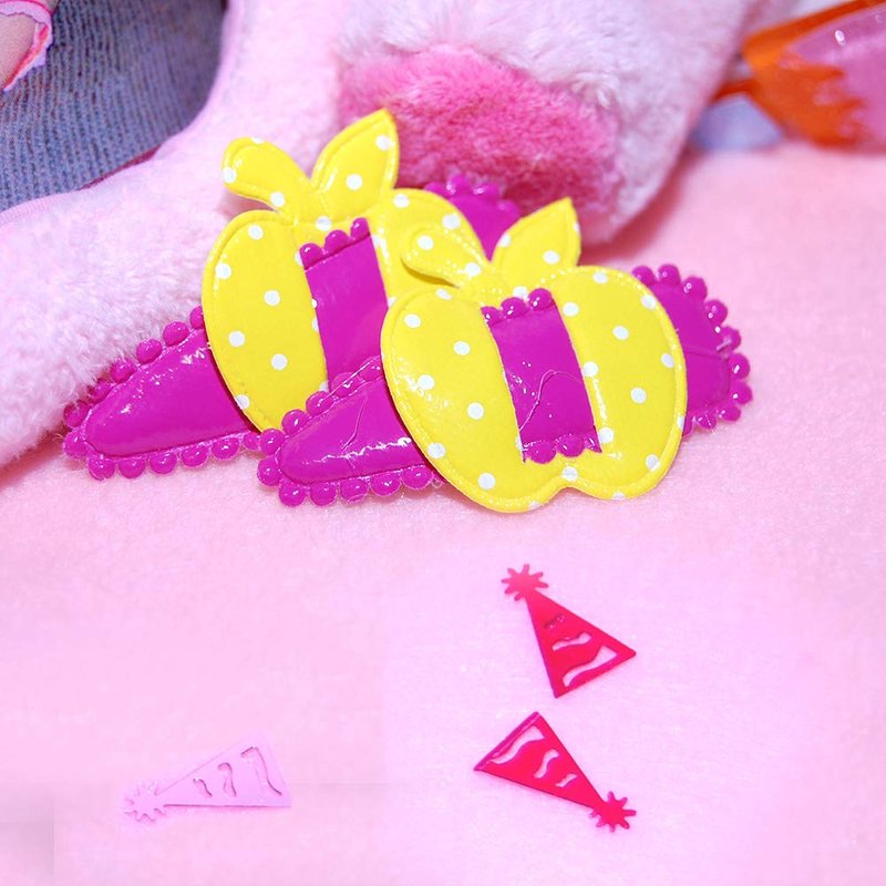 - ATTACHES TO HAIR : Attaches to hair with bend & snap metal clip so barrettes stay in place during active playtime.