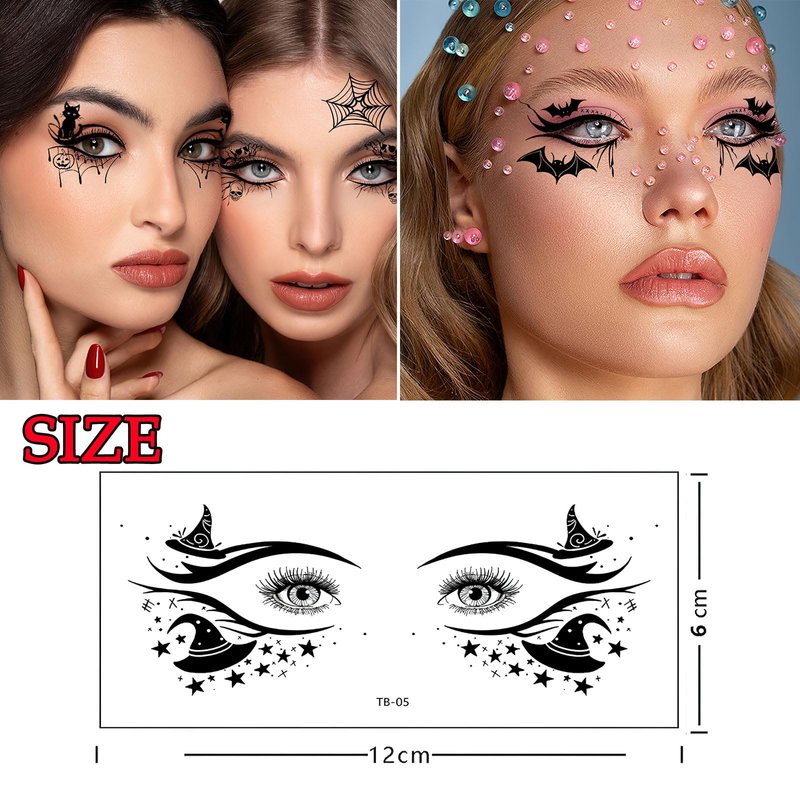 - DIY Makeup: The face eyeshadow sticker Tattoo to accent your interesting makeup, they look vivid and natural, supplemented with some makeup to make the final look very realistic and gruesome, great trick to surprise and scare your friends.