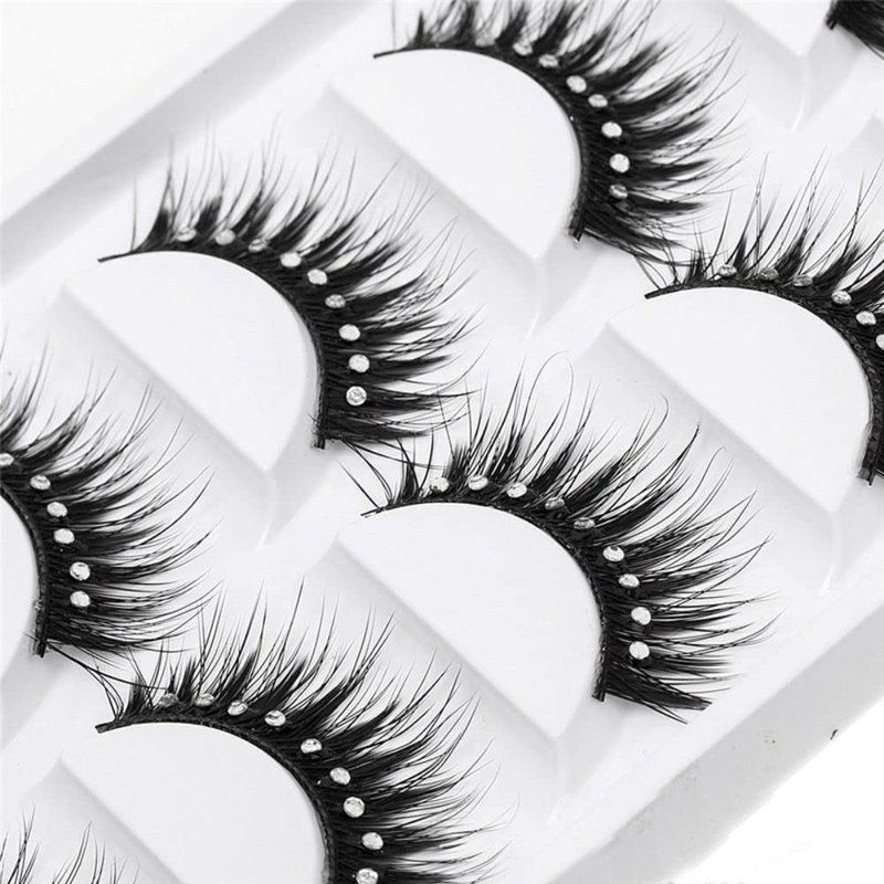 10 Pairs Soft False Eyelashes, Natural 3D Fake Eye Lashes with Shiny Rhinestones Makeup Party Extension Eyelashes Handmade Fake Lashes Volume Eyelash