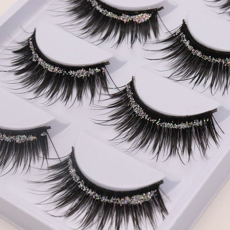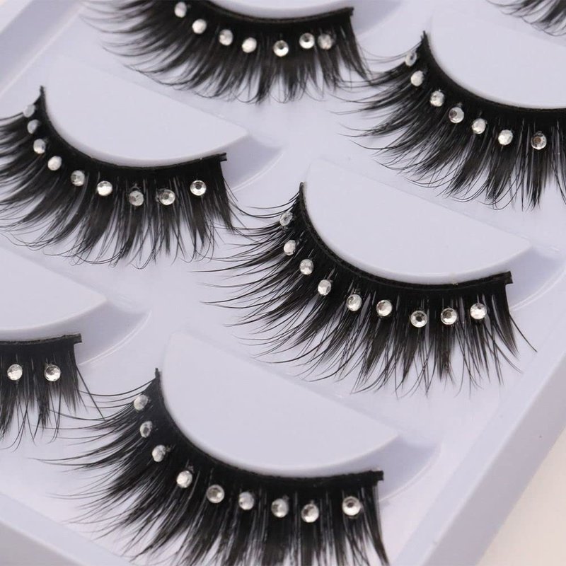 - The thick and slender black false eyelashes are embellished with sparkling diamonds, which makes the original eye makeup even more beautiful. It highlights the agility of the eyes and also plays a good role in enlarging the eyes.