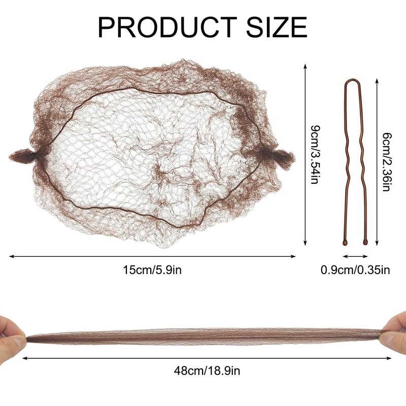 This hair net is made of high-quality and highly elastic nylon material, which is soft and comfortable. You can choose the appropriate hair net according to the hair color to achieve a good invisible effect, making the hair look harmonious, and then use U-shaped clips to fix it. It is an excellent set for fixing hair and an ideal choice for ballet dancers, actors, and anyone who needs to wear a wig.