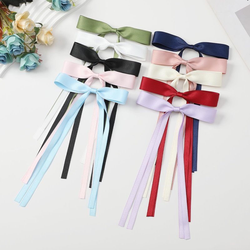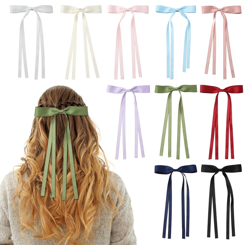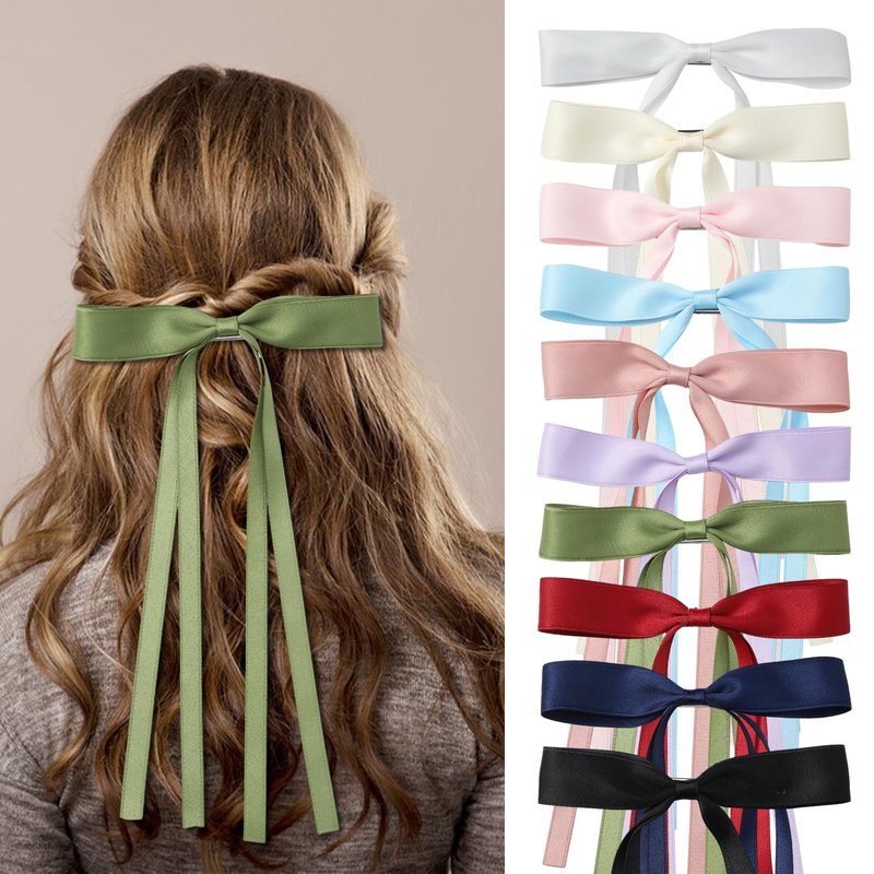 10 PCS Hair Bows for Women, Satin Hair Ribbon with Long Tail Bowknot Hair Clips for Women Girls, Hair Barrettes with Bow Accessories