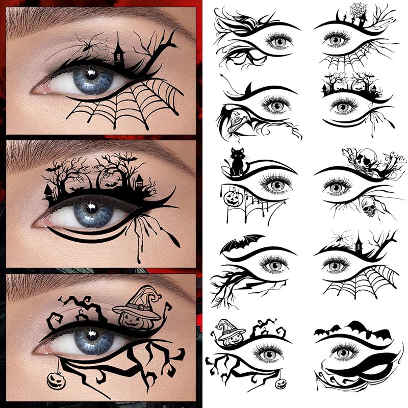 - These eye makeup tattoos can be used for Halloween and Day of the Dead parties, and can also be widely used in other occasions, such as costume parties, photo portraits, cosplay, haunted houses, daily decorations, etc., making you the center of attention in the crowd.