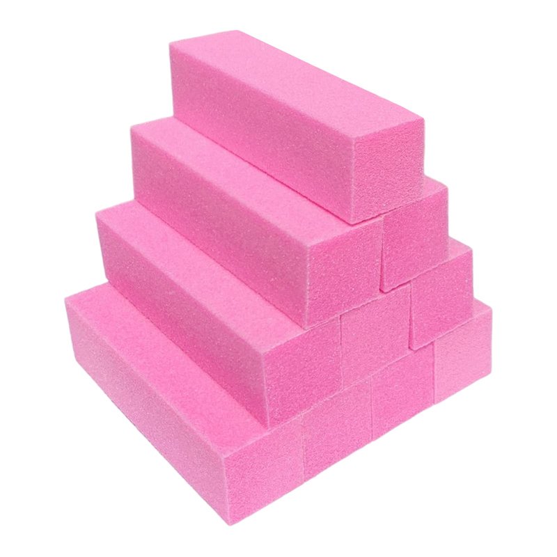 10 Pcs Nail Buffer Block for Acrylic and Natural Nails, 4 Sided Sanding Buffers for Gel Nails Fingernail Shine Buffing Filer Set, Professional Manicure Polisher Buffer Bulk Medium Grit (Pink)