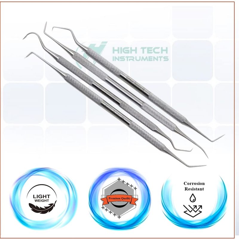 These dental tool is made of high quality stainless steel promising durability, long life span, and anti corrosion properties , easy to sterilize, and fully autoclavable. They are designed to address different areas of the mouth. Different ends of the dental picks can help you pinpoint the spots you miss in your daily brushing and flossing. Holding surface is knurled and textured for a firm grip. HTI dental probes are designed for both professional dentists and personal use. These hygiene tools help to remove stains, tartar, and debris from teeth and gums without causing pain and damaging tooth enamel. These tools make difficult & detailed procedures easy to carry out.