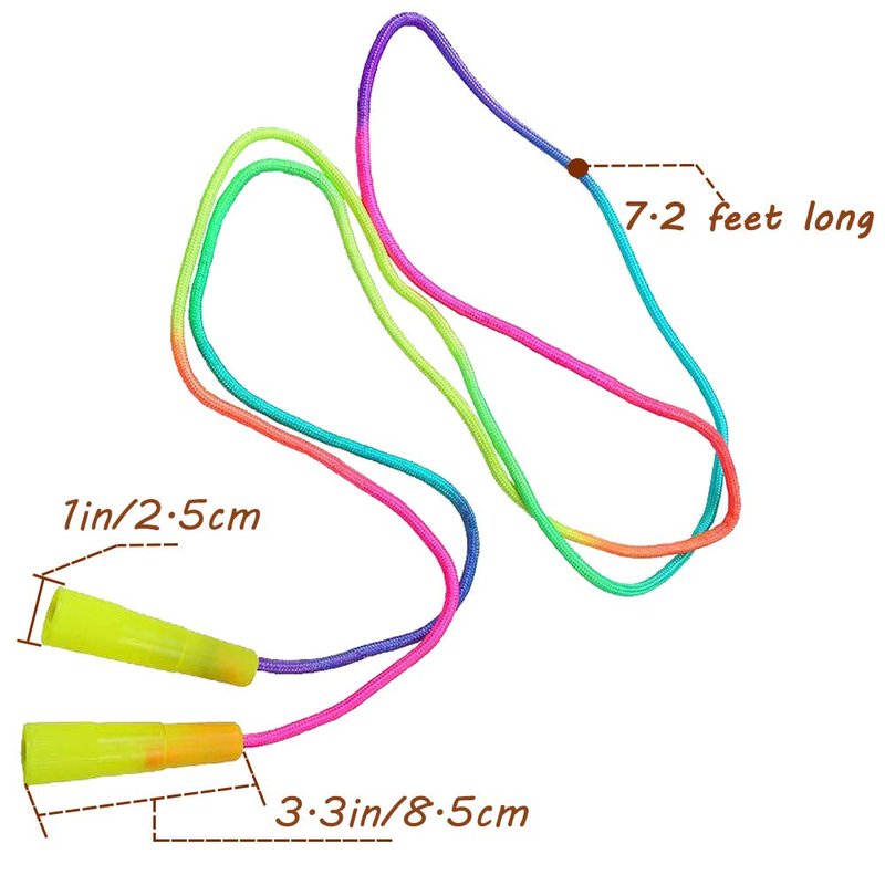 - These jumping ropes for kids come in eye-catching colors to immediately capture the attention of any kiddo,they will love the bright rainbow colors and the mesmerizing effect of the colored skip rope slicing through the air.