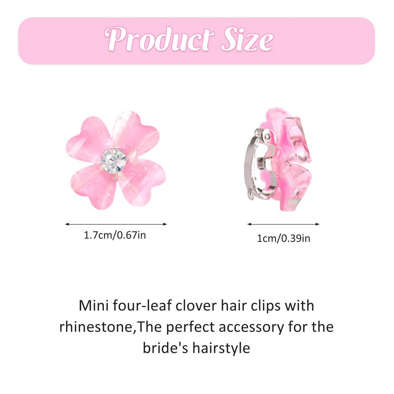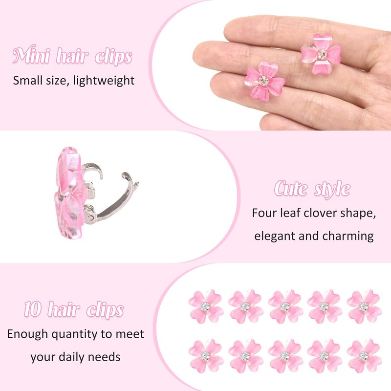 10 Pcs Small Flower Hair Clips with Rhinestone Mini Clover Cute Hair Pins Wedding Bridal Hair Accessories Decorative for Fine Hair Barrettes for Girls Women(Pink)