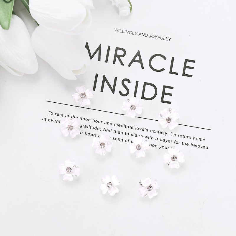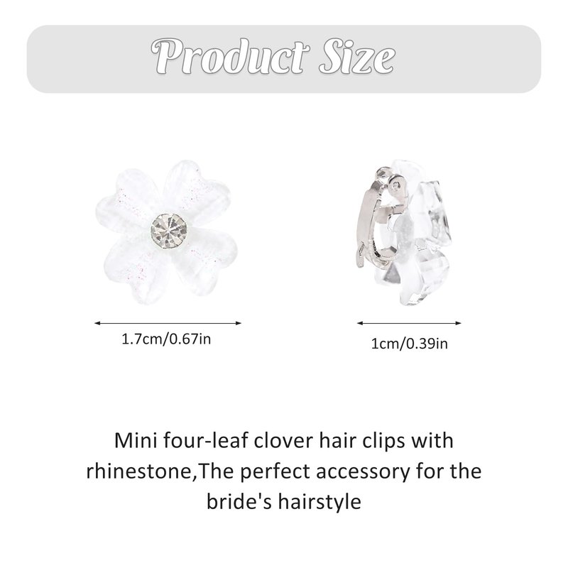 10 Pcs Small Flower Hair Clips with Rhinestone Mini Clover Cute Hair Pins Wedding Bridal Hair Accessories Decorative for Fine Hair Barrettes for Girls Women(White)