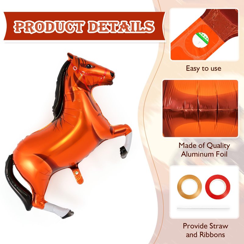- Wide Application: These horse foil balloons are suitable for various occasions, such as birthday party, baby shower, cowgirl bachelorette party, cowboy rodeo party, and more. They can be used as decorations on walls, ceilings, tables, and doors to create a festive and sporty atmosphere.