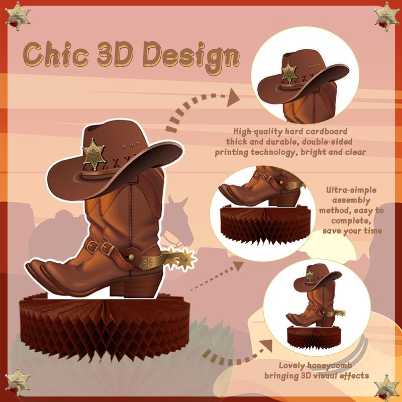 - [Rich in Quantity]: You will receive 10 pieces of western birthday party decorations. Each package comes with 7 pieces western centerpieces for tables and 3 3D standing cards with diverse styles, adequate quantity and styles for you to your daily or festival decorations demands, also enough for you to share cowboy decorations party with different people.