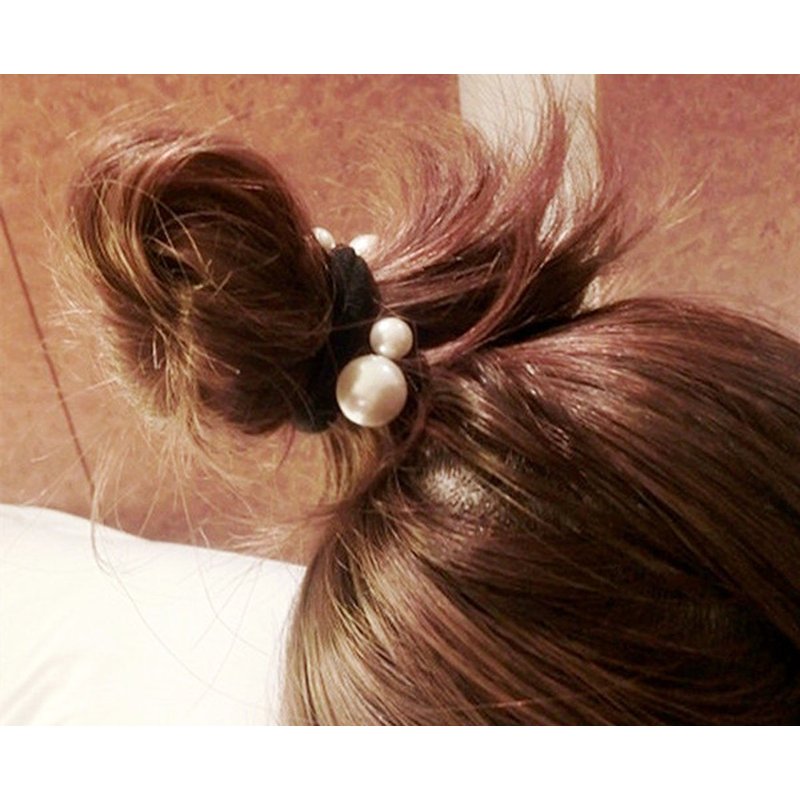 10 Pcs Women's Artificial Pearl Black Elastic Rubber Band Hair Ropes Headbands - No Damage Hair - Seamless Pearl Towel Ring Hair Bands Ponytail Holder Hair Ties Hair Accessories