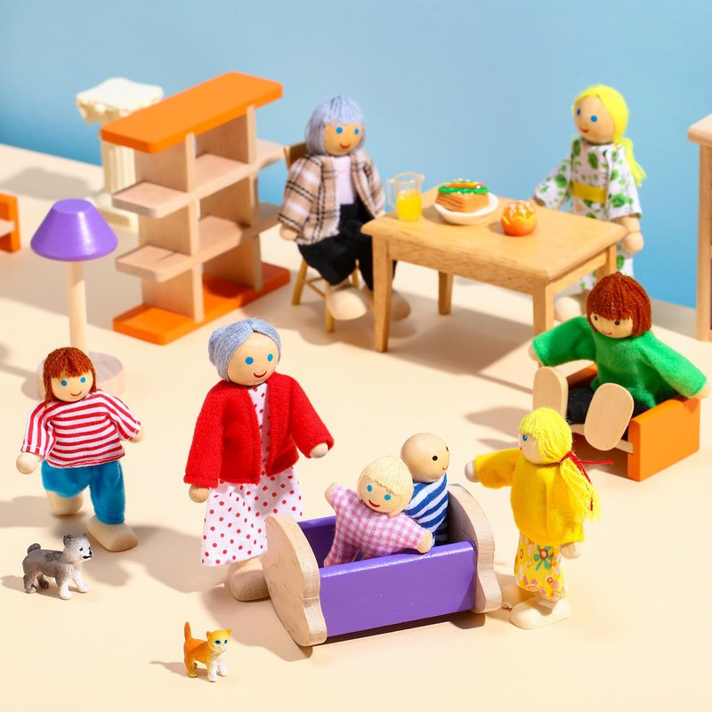 - Reliable quality: this wooden dollhouse set is made of quality wood with smooth edges, painted with safe pigments, each puppet is polished by hand without burrs to protect players from scratches, suitable for your little ones to play with and collect