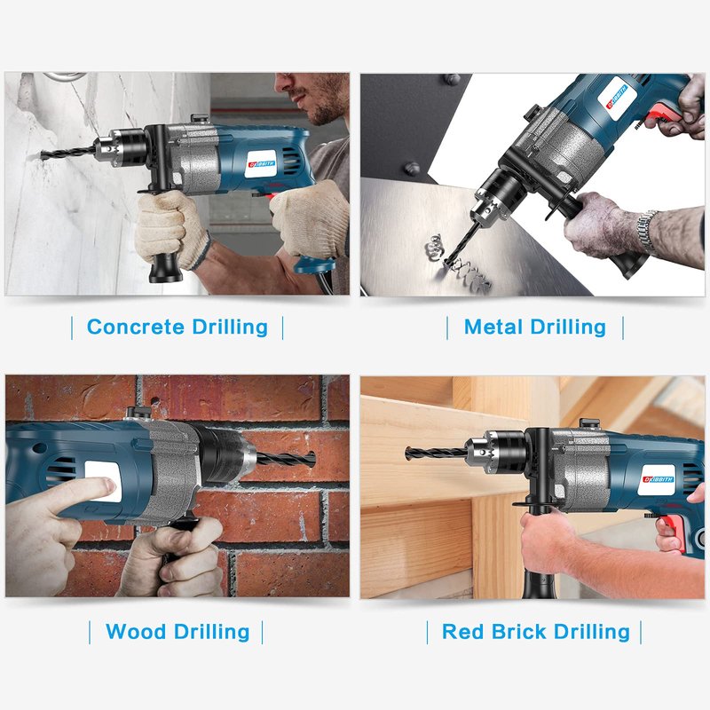 - Wide Capacity - ideal for drilling concrete, walls, bricks, ceramic, wood, glass, tiles, stainless steel and more; while drilling harder materials, Water or coolant is highly recommended.